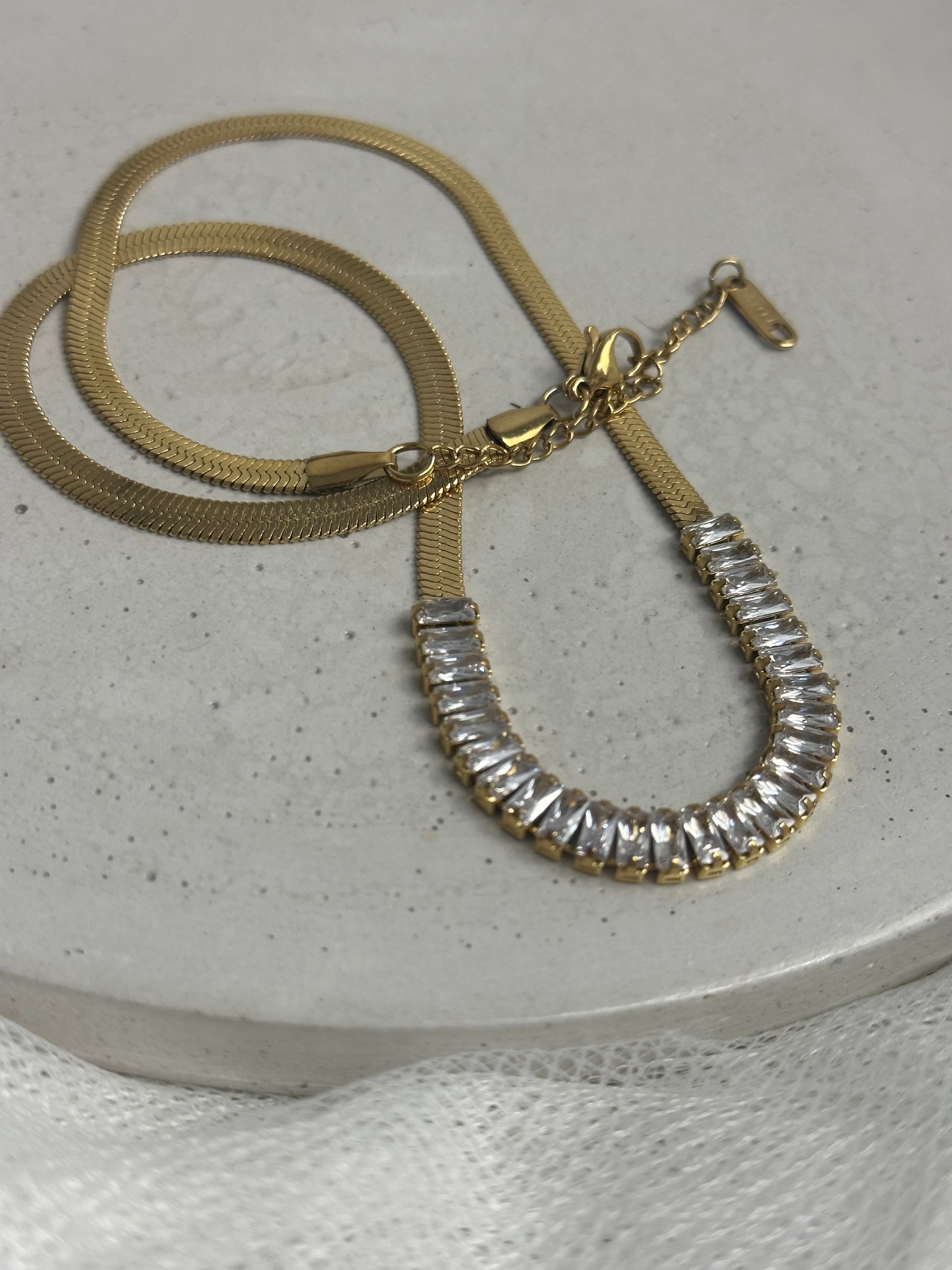 Χρυσή αλυσίδα λαιμού τύπου snake με πετρούλες ζιργκον.