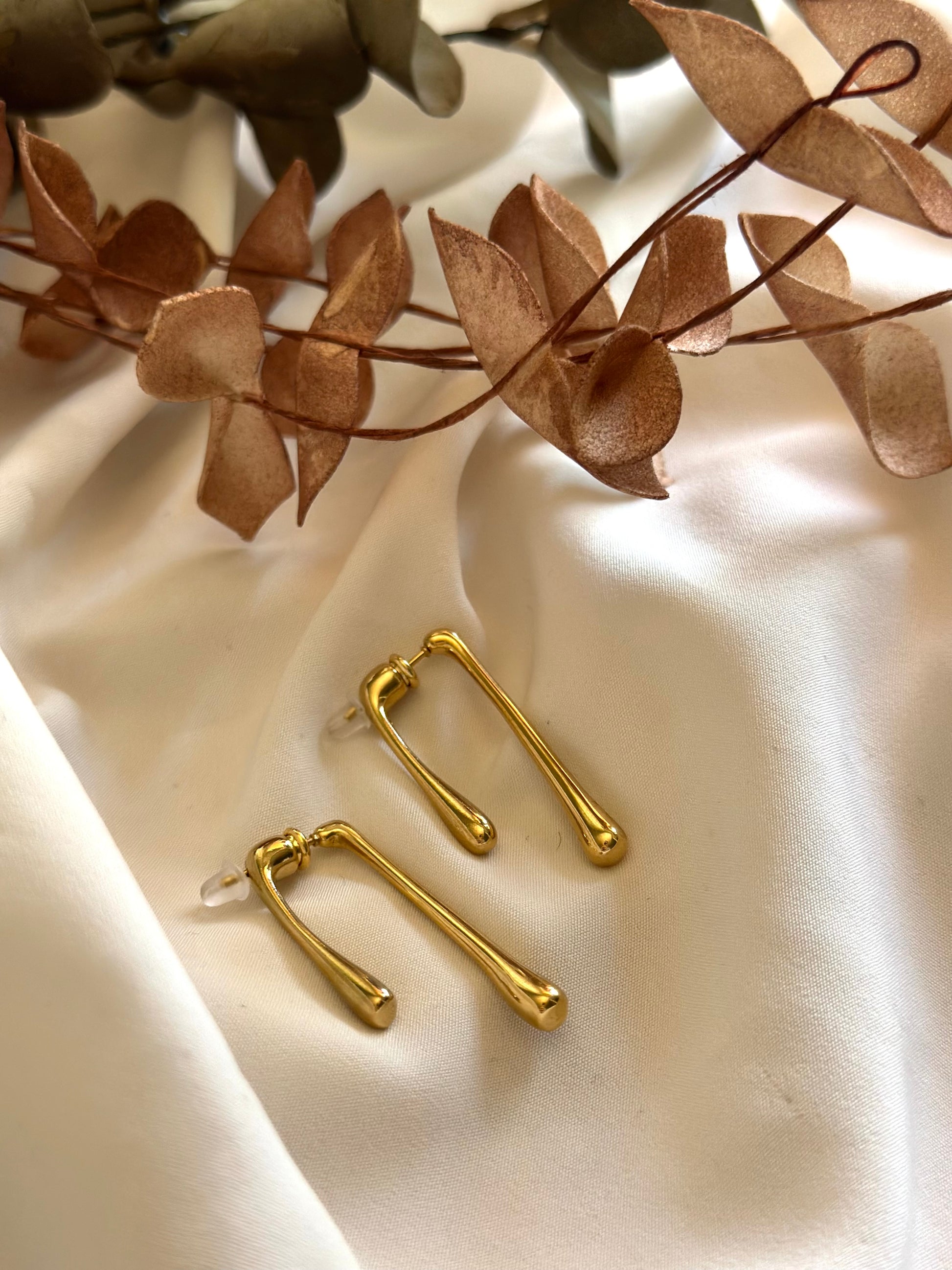 Χρυσά καρφωτά σκουλαρίκια με όψη λιωμενου κεριού.